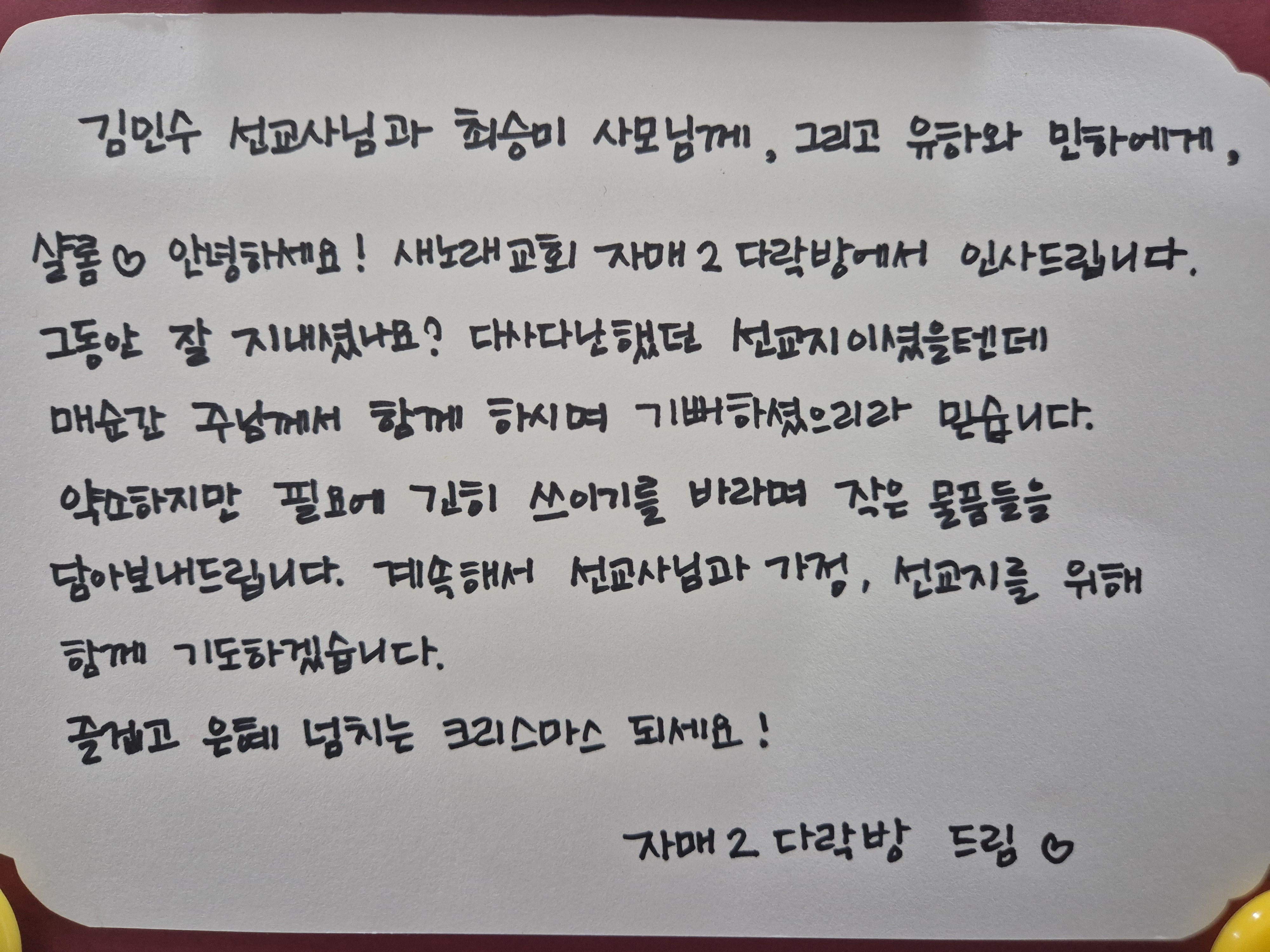 그립고 고마운 여러분 마음에 '샤밧샬롬의 희망'을 전합니다.