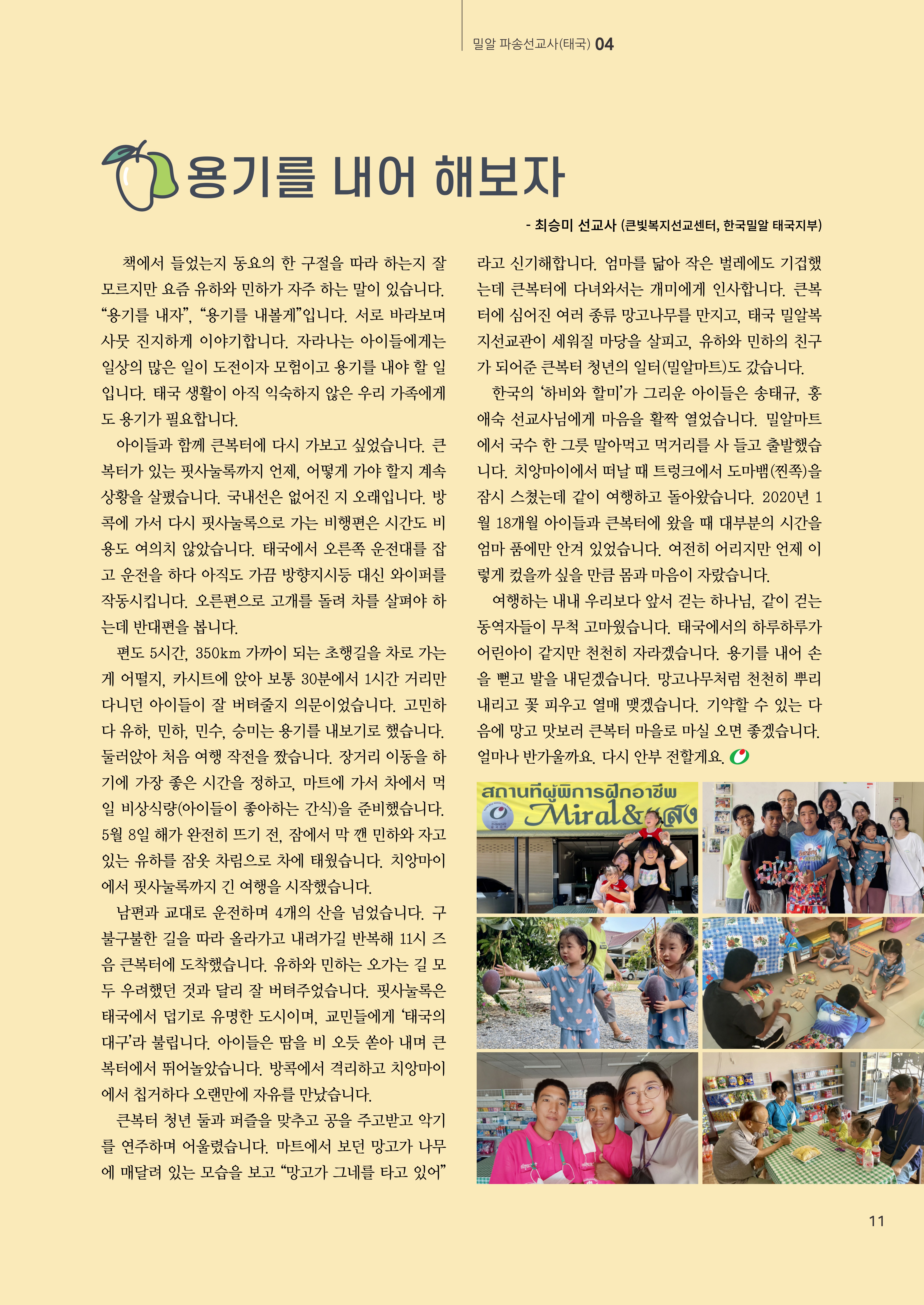 여러분의 기도와 응원 덕분입니다. '그래도 감사와 기대'의 바람으로 이런저런 이야기와 사진을 나눕니다. 승미 선교사가 밀알보에 연재하는 글 모음(이미지)도 전합니다. 글과 길은 비슷한 말입니다. 선교현장에서 아내 선교사 이야기를 접하기가 어려운데 한국밀알에서 소중한 공간을 마련해주었습니다.